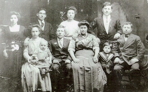 Back Row: Grandma Restaino, Grandpa Restaino, Aunt Rose, Uncle Carmine Front Row: Annie Restaino Cocchiola holding Albert Cocchiola, Joe Cocchiola, Aunt Rose, Anthony, Uncle Ralph